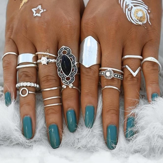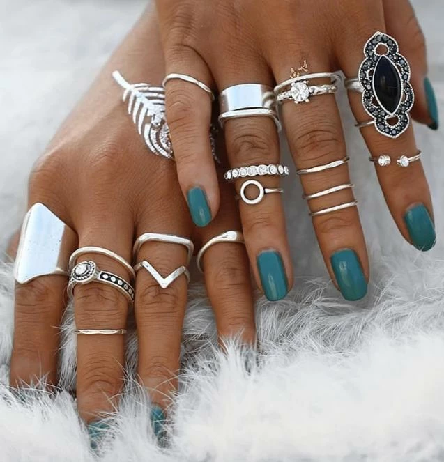 Reminisce about sandy white beaches and beautiful oceans with this boho ring set! From the ever trendy midi rings to knuckle rings, add a touch of boho to every outfit.