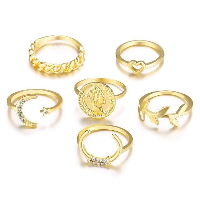 Flaunt your style with these vintage gold coin & leaves ring set.