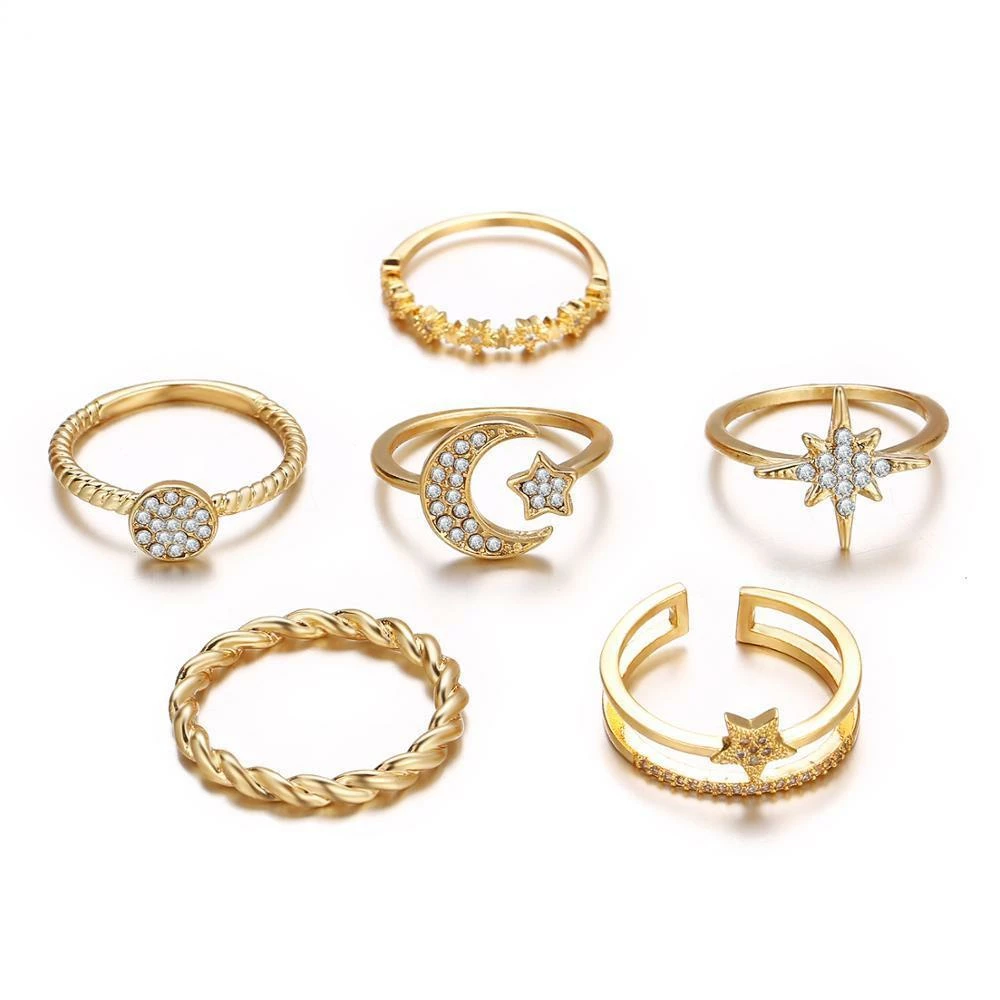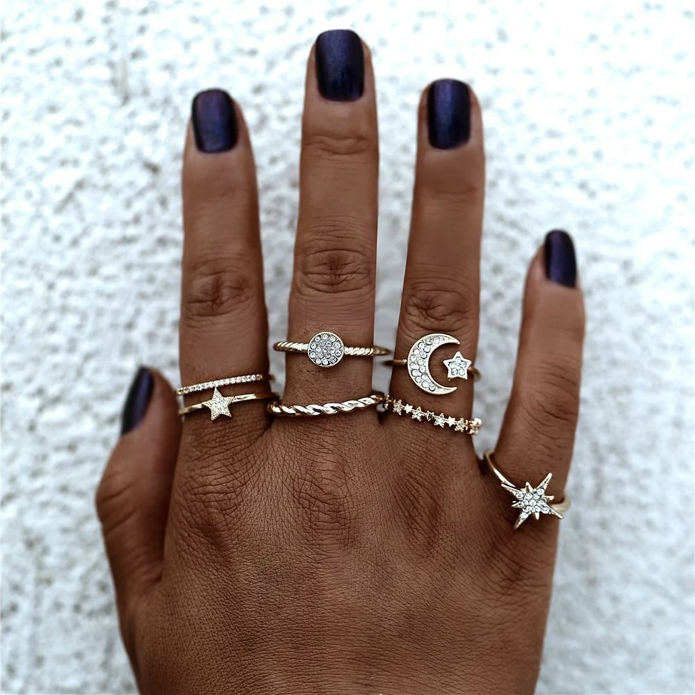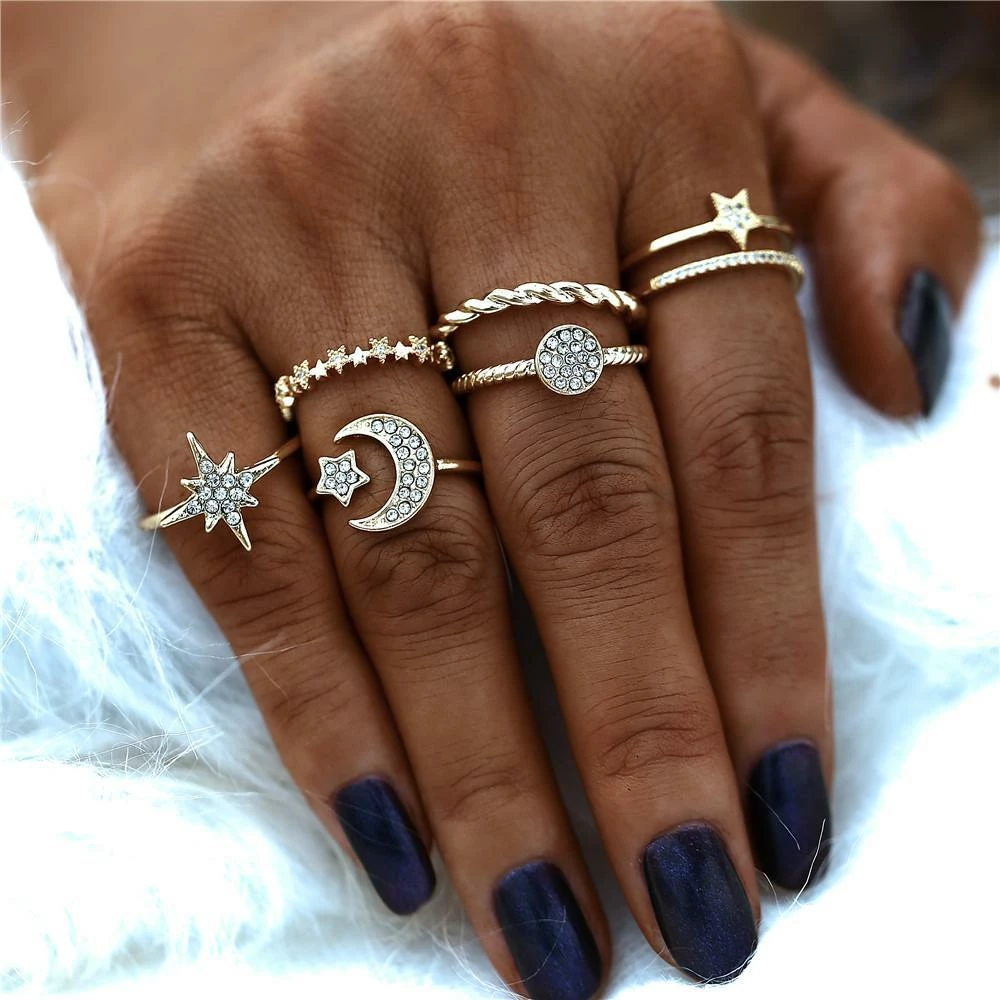 Be a boho moon goddess with this cute ring set with 6 rings that you can wear on your own or mix and match!
