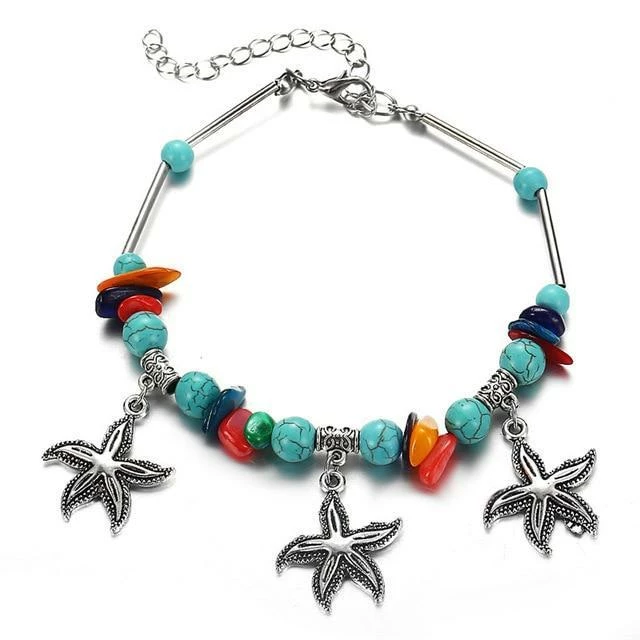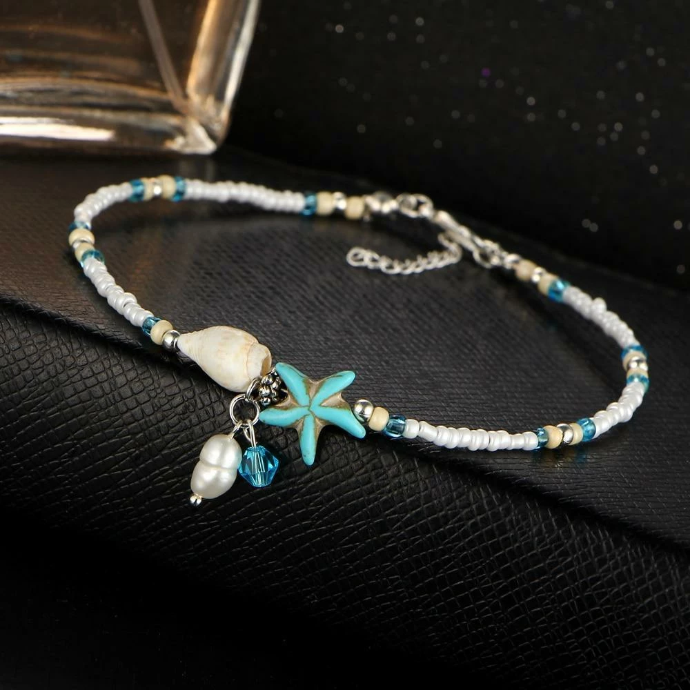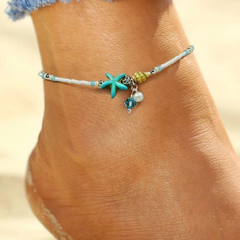 Flaunt the popular mermaid trend with these starfish anklets that come with beautiful and delicate aquamarine beads – these look cute and minimalist for the beach lover!