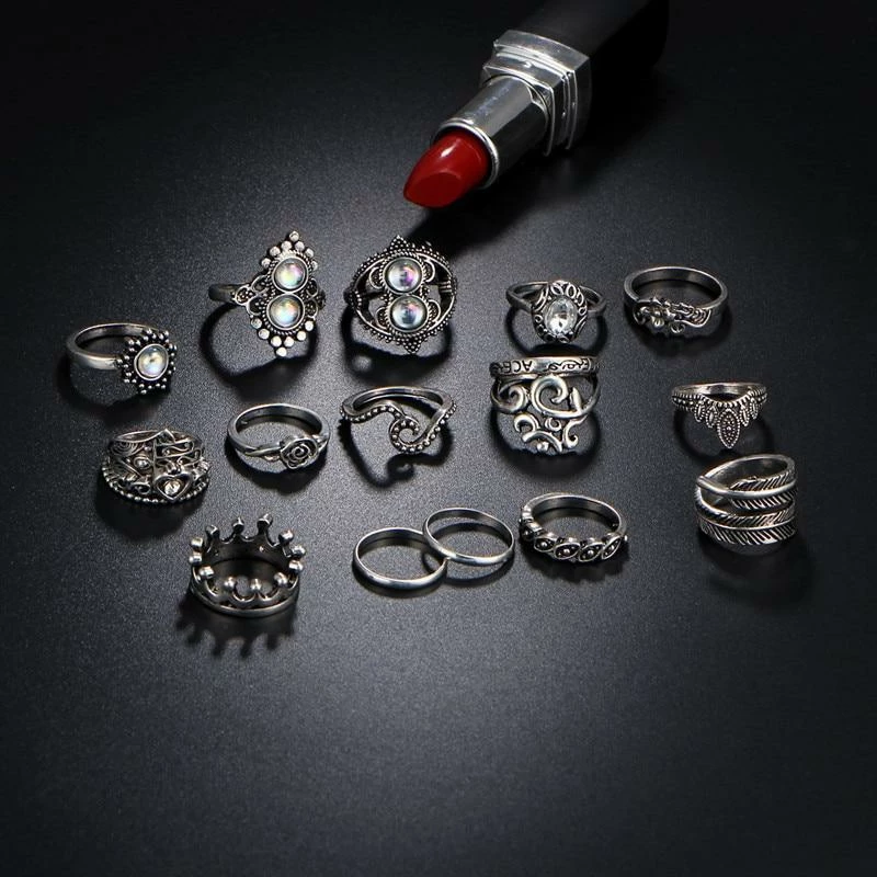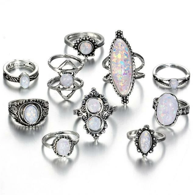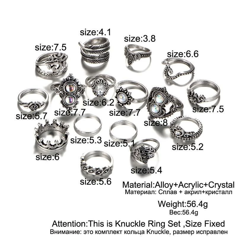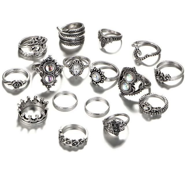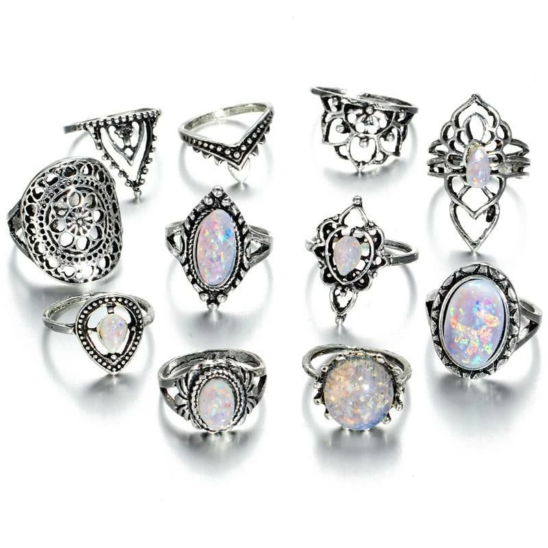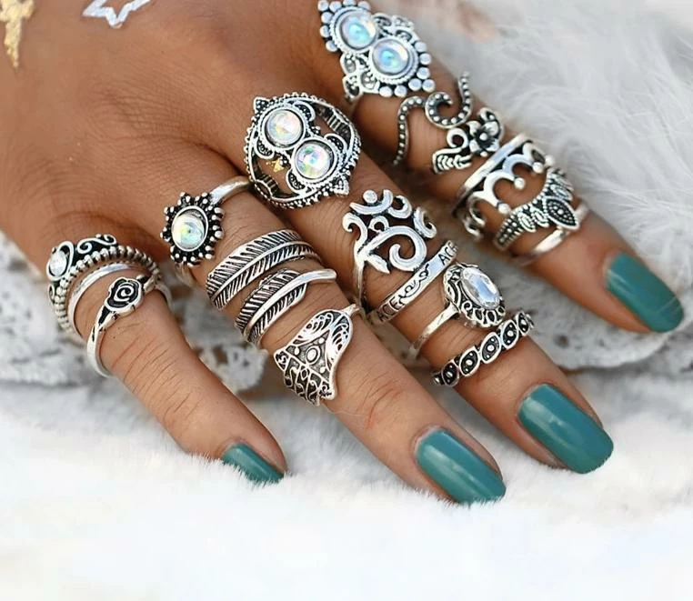 Say goodbye to boring old jewelry and say hello to statement ring sets like this one that are cute when worn individually and bohemian-tastic when worn together!