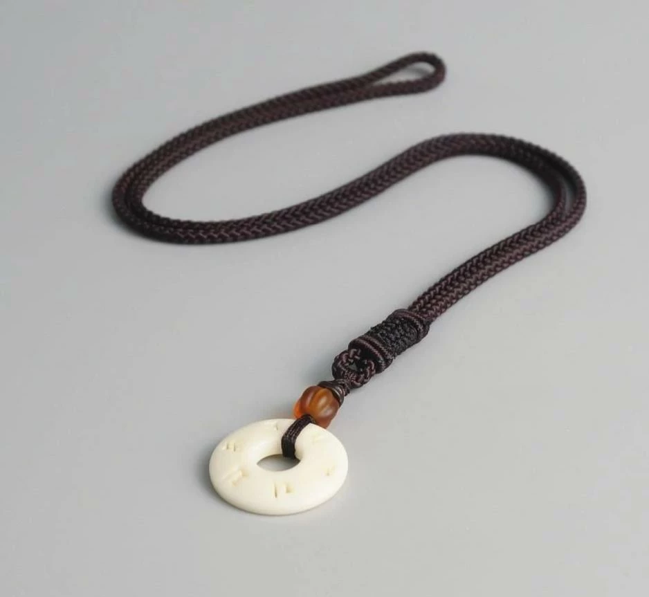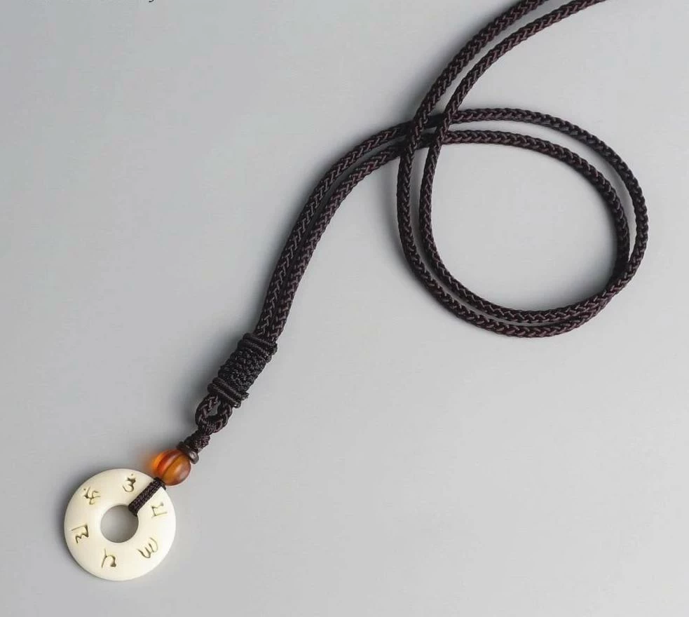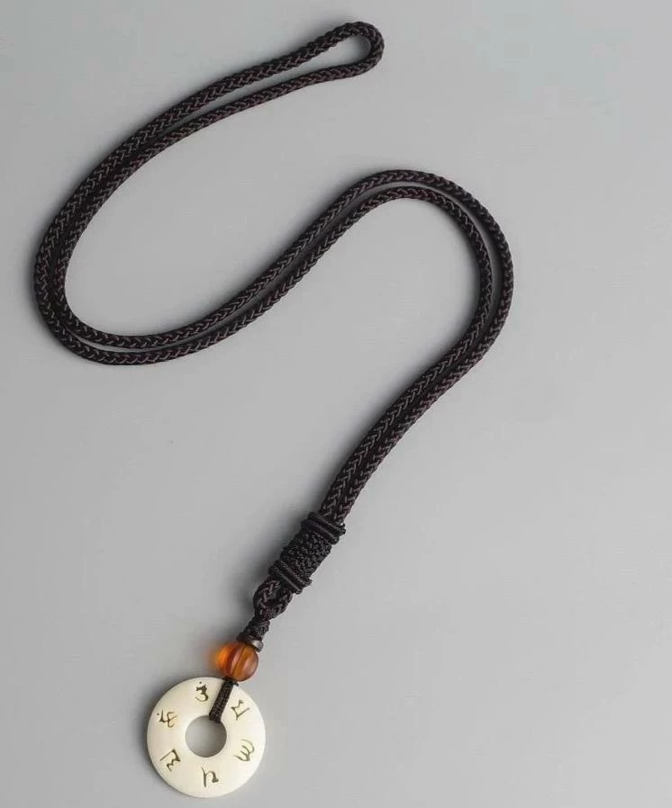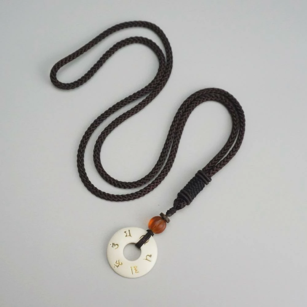 This braided Tibetan necklace has White Bodhi & Om Mani Padme Hum, the justice wisdom & prayer in Tibetan Buddhism inscribed in white tagua nut.Â