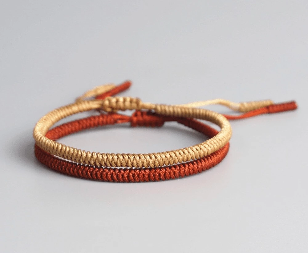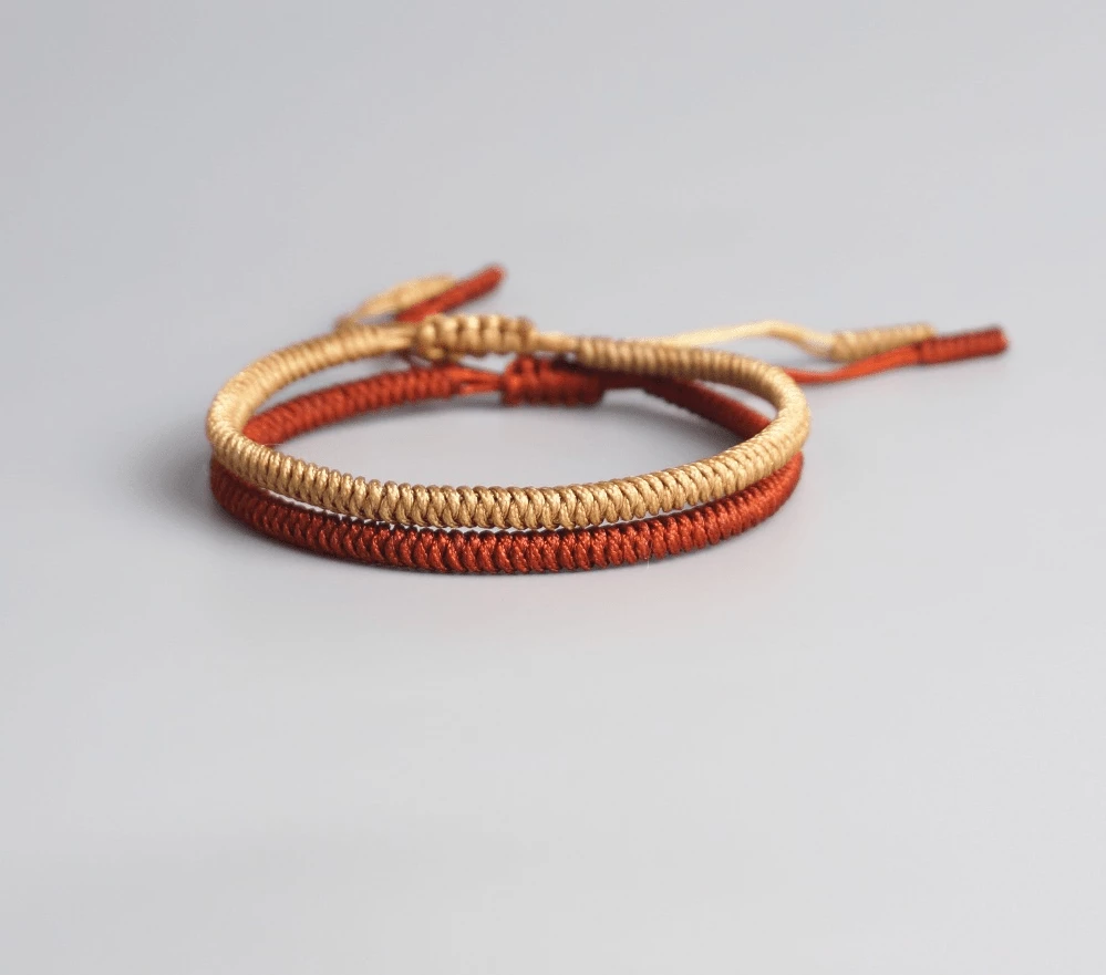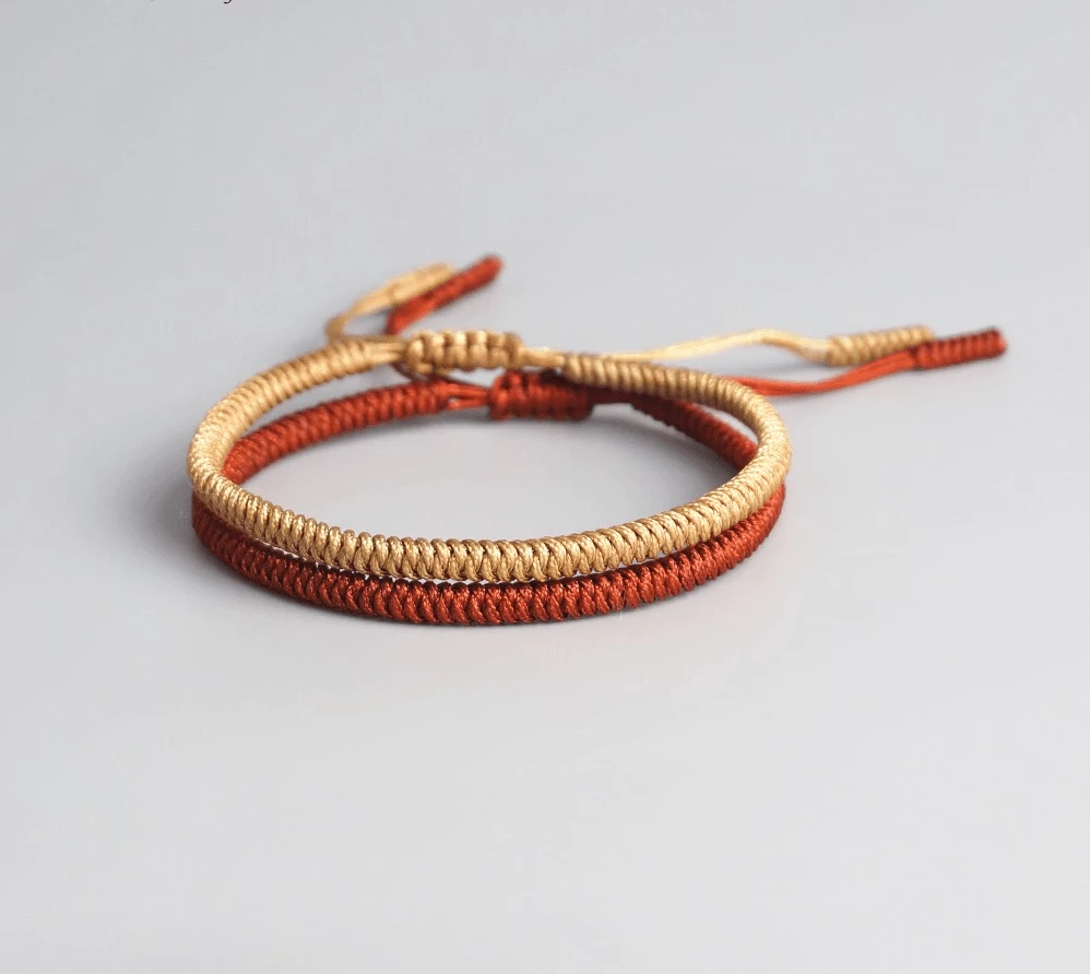 Coming in bright orange and brown woven, these buddhist bracelets are a must have accessory. Â