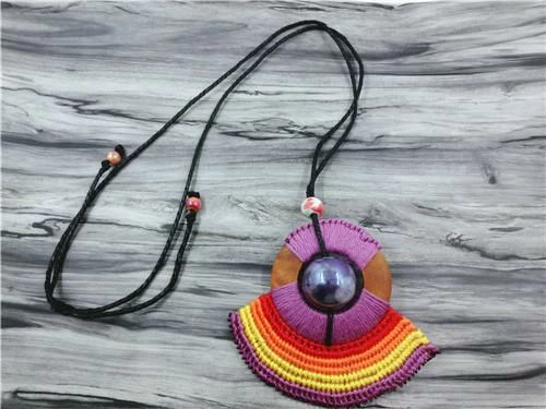 This multicolor necklace is bright and vibrant and has a black bead at the center. Wear this necklace to give a pop of color to any outfit.