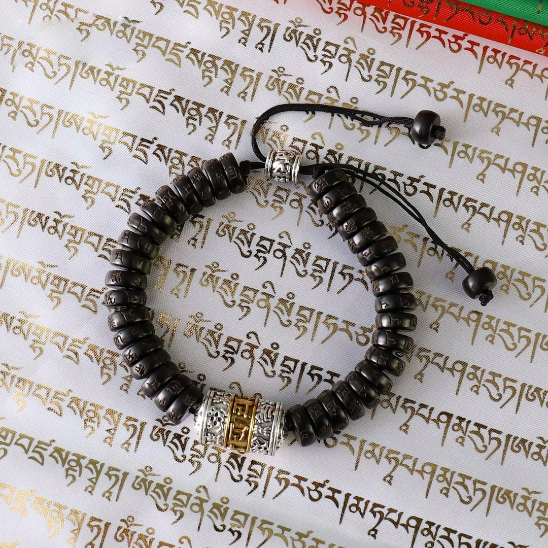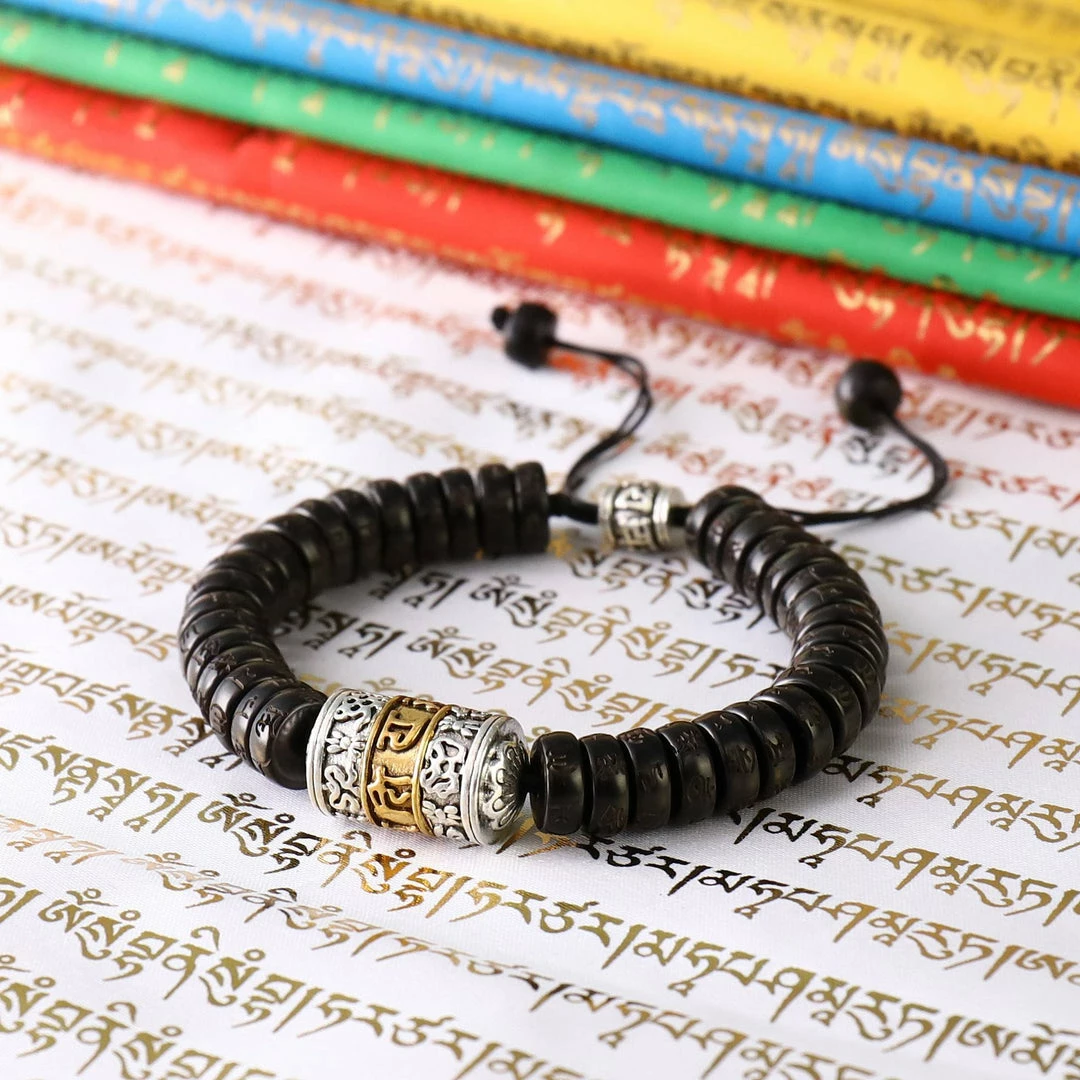 This Tibetan Bracelet is a handmade Vajra Charm White Copper Prayer Bell. It is made of natural coconut shell beads.