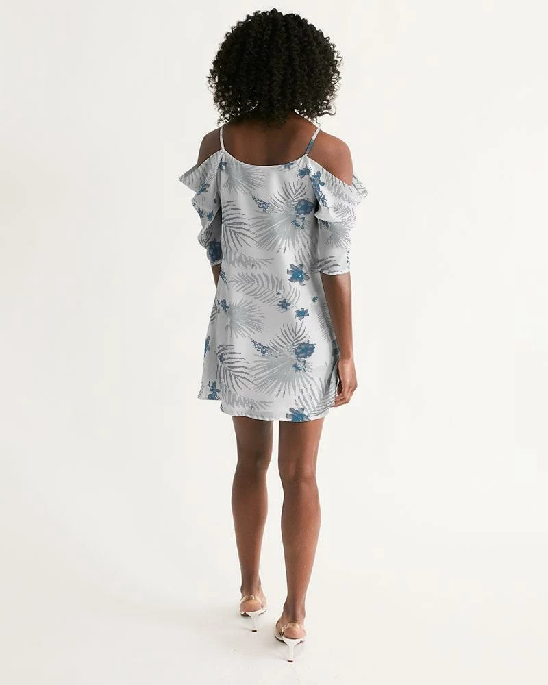 About The ArtPalm Soul by Find Your Coast Product DetailsFlirty and fun, our Women’s Open Shoulder Dress with a mini cut compliments every figure. Short, draped sleeves flow from the open shoulder neckline for an extra flirty flare.