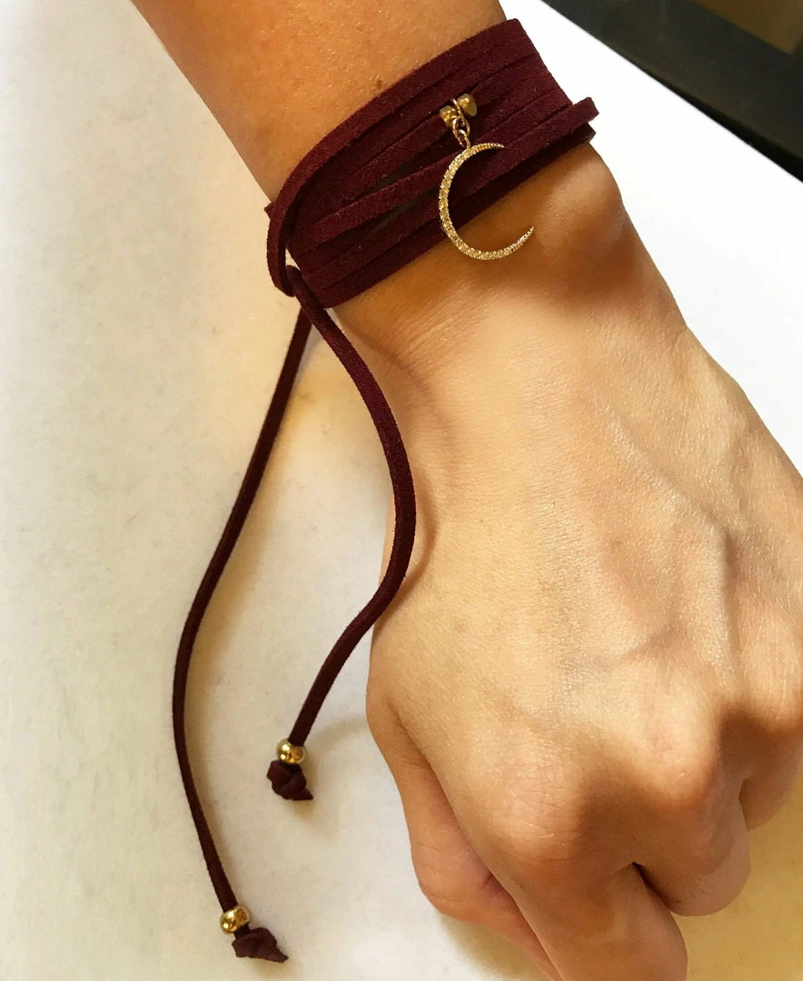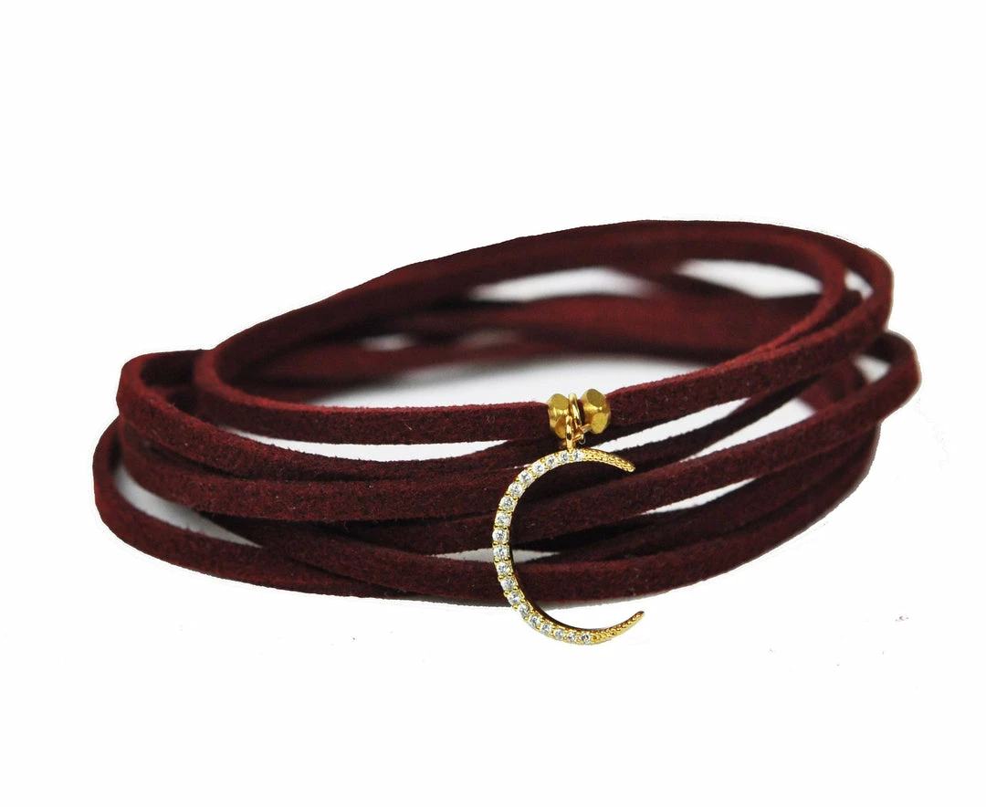 Gena Myint Jewelry Crescent Moon Burgundy Suede Choker