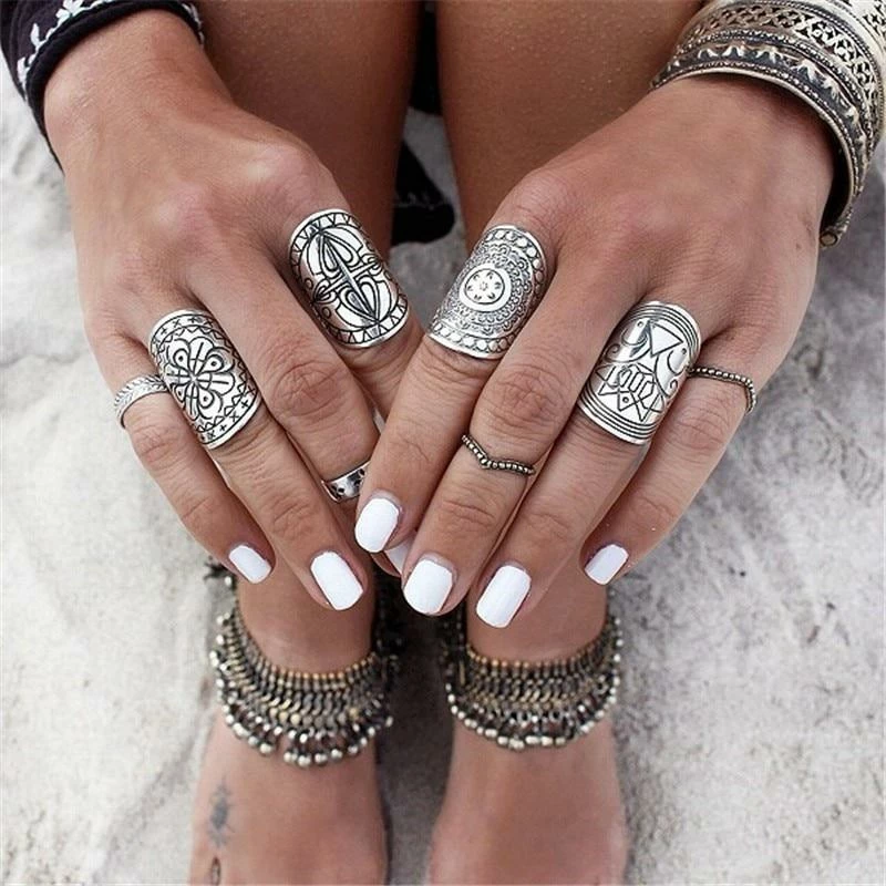 Flaunt your bohemian personality with this antique silver-plated knuckle ring.