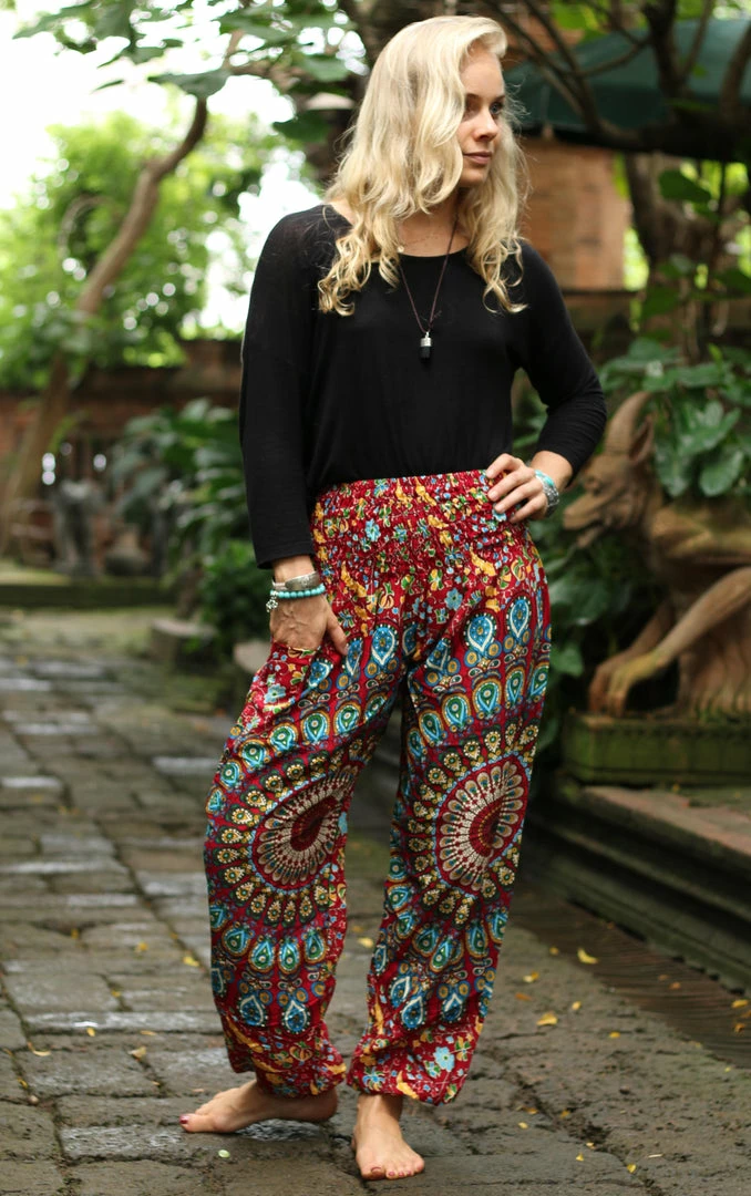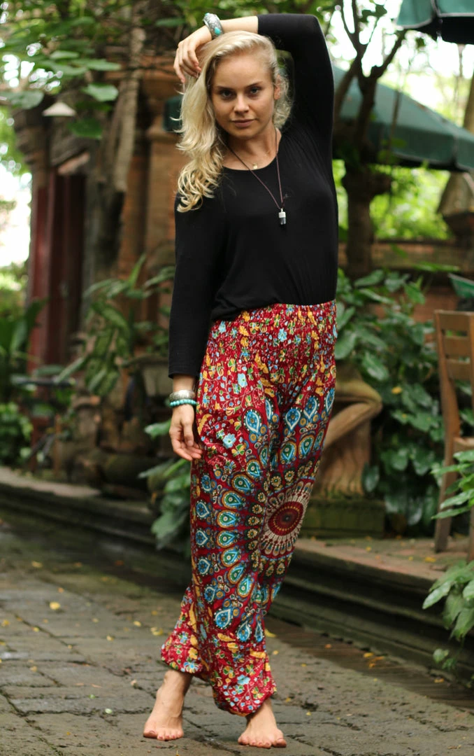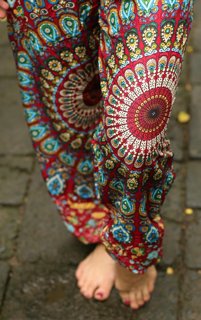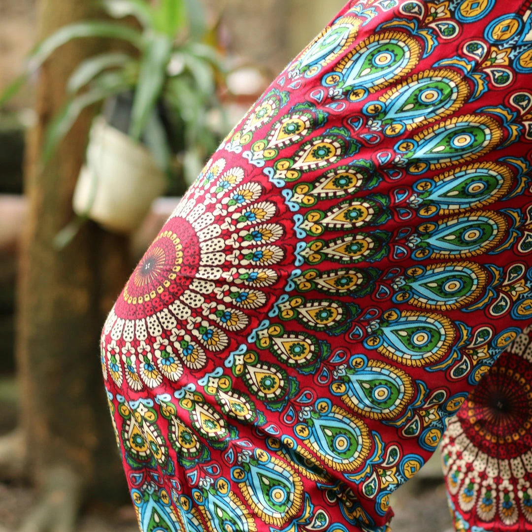 Turn heads with these gorgeously flirtatious Chakra Mandala pants in Campfire Red as you run from a concert to a soiree with friends in style. With bohemian vibes embedded into the very soul of these pants, you can’t go wrong pairing these with a ruffled crop top, a basic tank or even a gorgeous muted tunic. Let your pants take center stage as you live your globetrotter life without a care in the world.