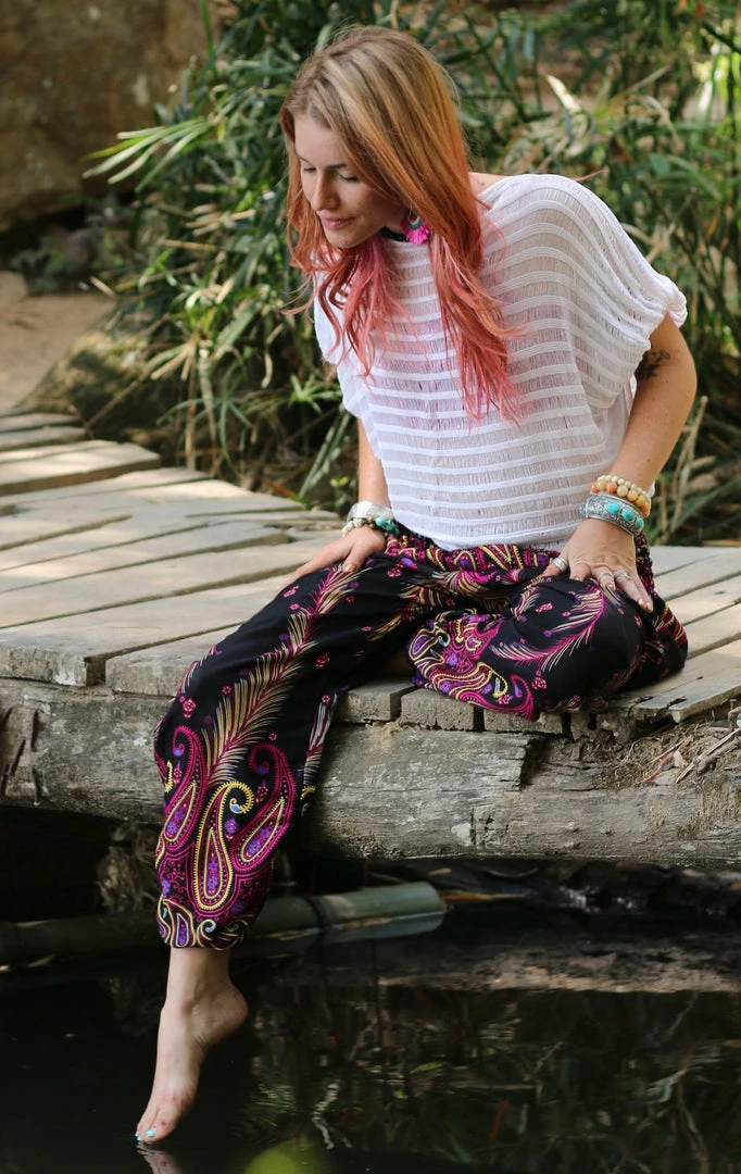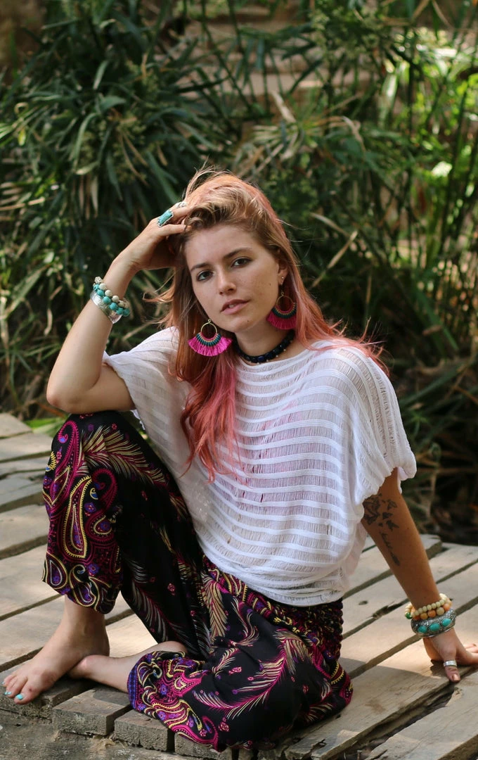Channel the energetic positivity of electrifying pink in this serenely majestic peacock-inspired design to brighten up your summertime looks. You can rock this vibrant and dazzlingly bright colour palette anywhere and everywhere you want your presence to cast a loud and sassy bohemian vibe.