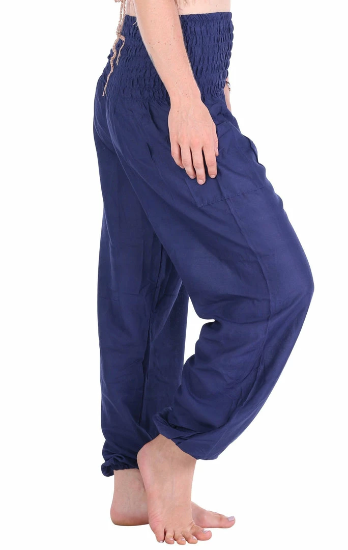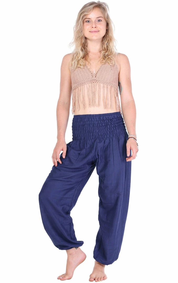 These Navy solid harem pants radiate calm and are for the effortless boho diva. Teaming perfectly with crop tops or simple tees, take these Navy pants on hikes and yoga retreats for a memorable & comfortable trip!