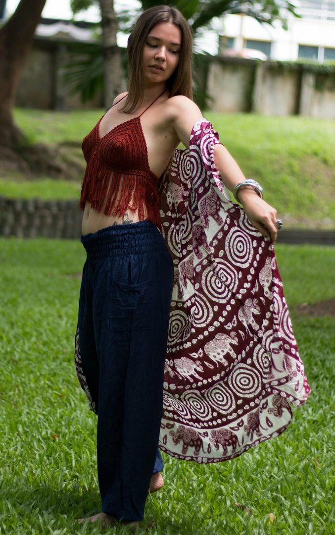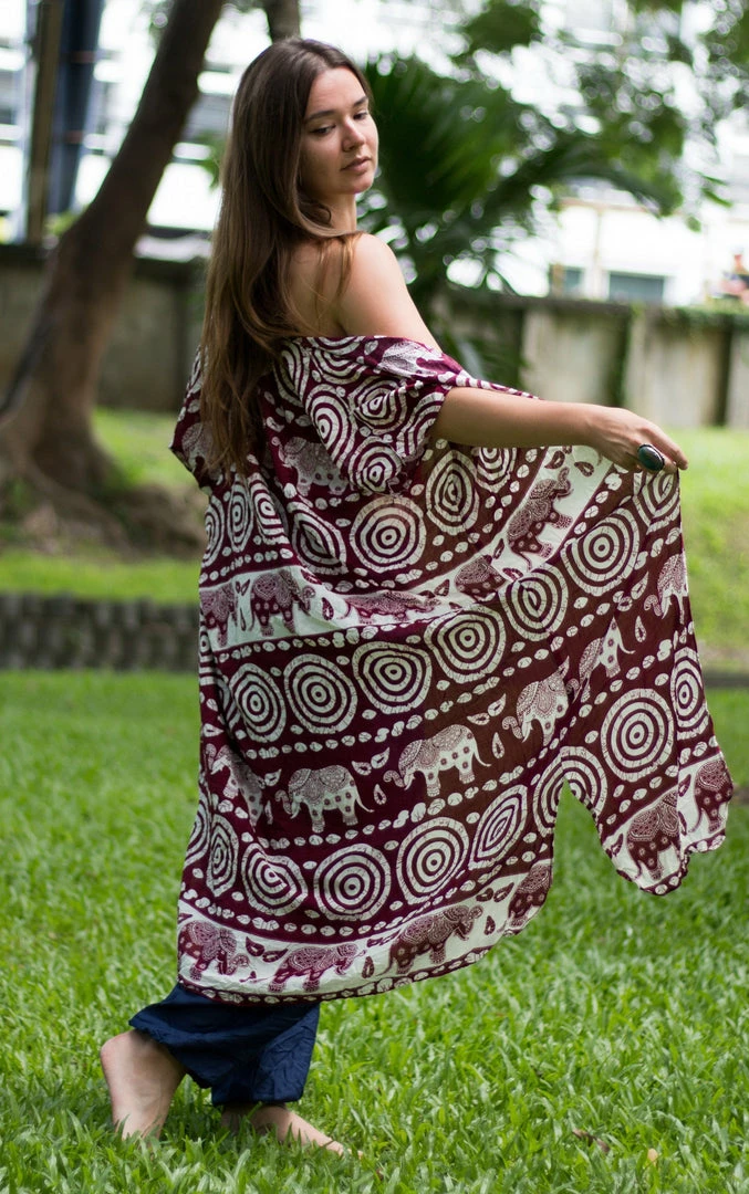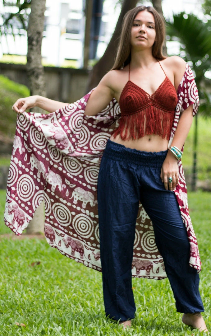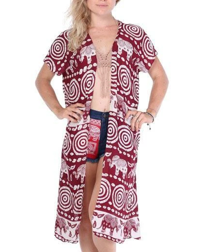 It is impossible not to love this kimono with elephant and tribal detailing. Pair if with a crochet top and some comfy solid colored harem pants, and you will be ready to rock!