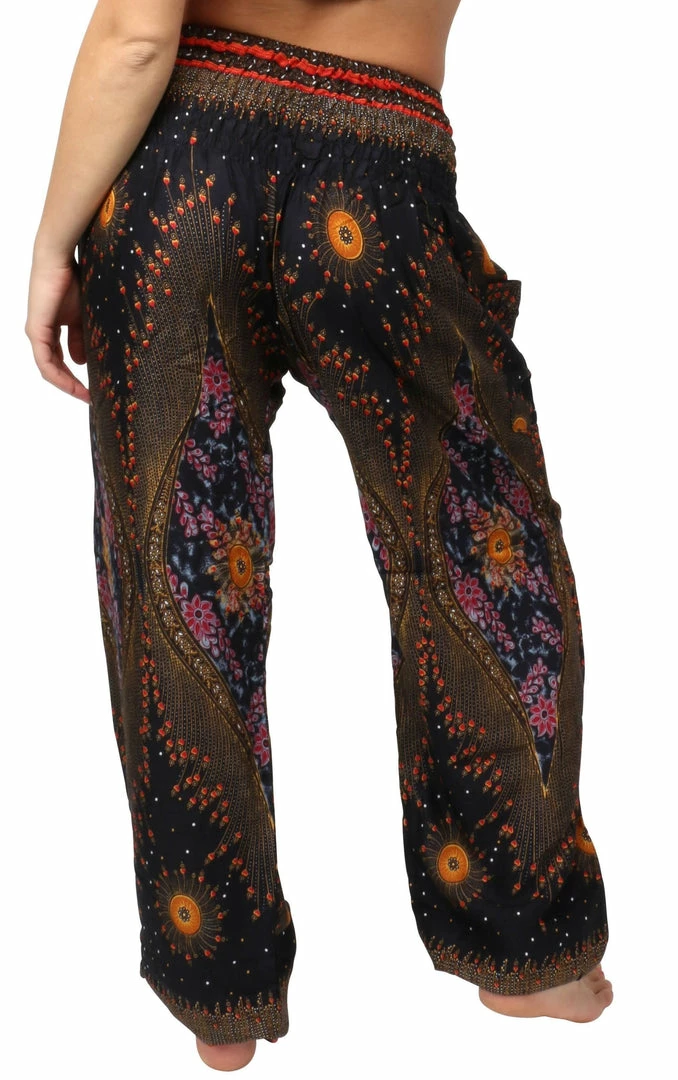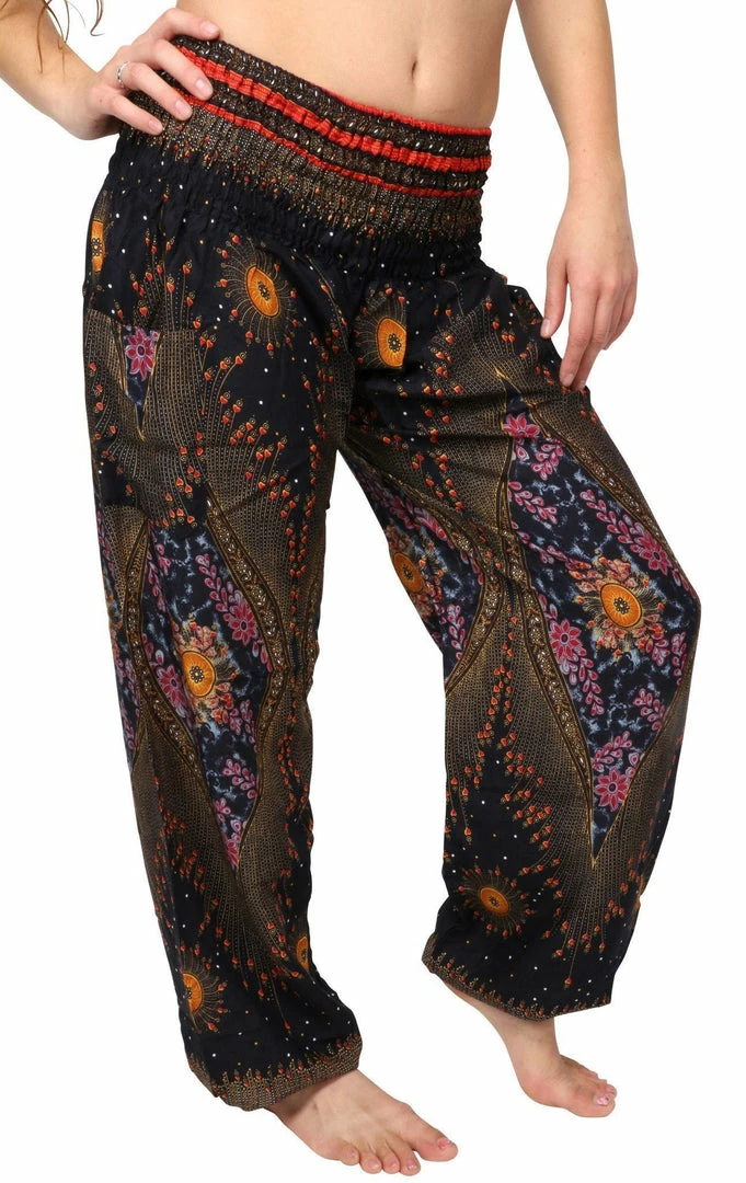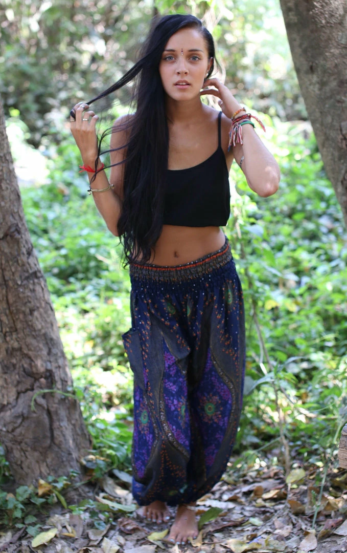 Love Boho clothing? These royal blue harem pants were crafted with you in mind. Handmade from 100% cotton, these soft and comfy peacock print harem pants are likely to channel your free spirit.