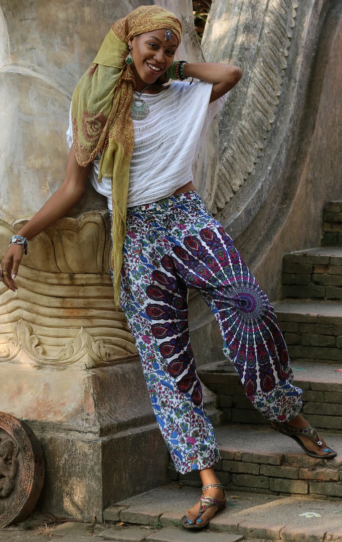The Sacred Blue Chakra Mandala pants radiate an exotic spiritual energy with their vibrant blue colour palette and delightfully intricate mandala design. These are the perfect pants to hit your yoga class in style, and then grab lunch with your friends without having to worry about an outfit change!