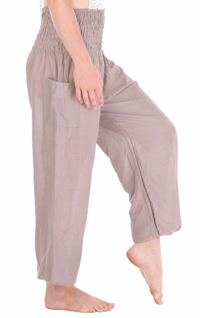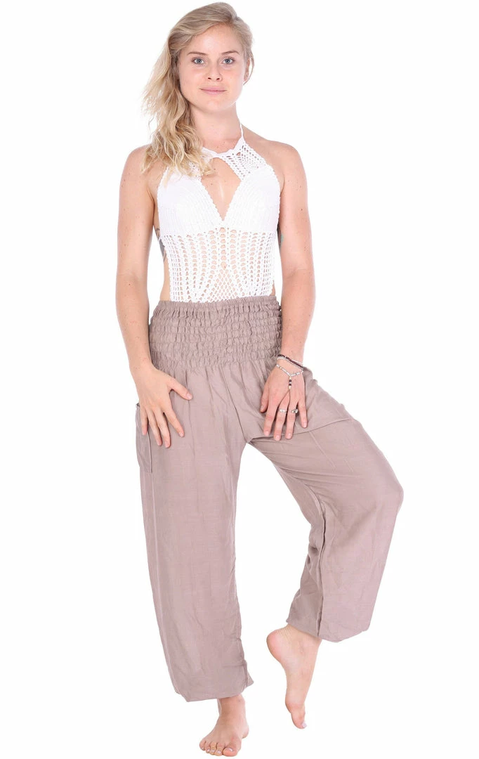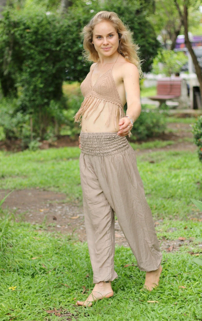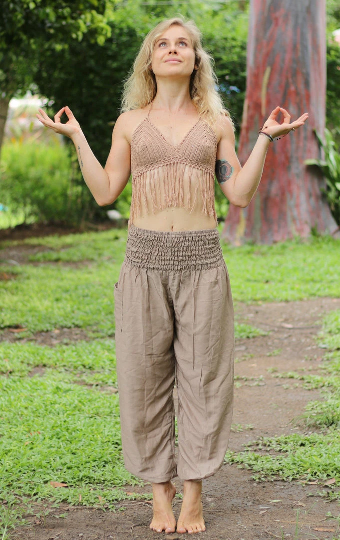 If you’re bored of the standard black and white in your wardrobe but love minimalism, these nude Tan solid harem pants will become your new neutral. Perfect for evening events and even better for a day soaking up the sun, this pair will keep you stress free and comfy all day!