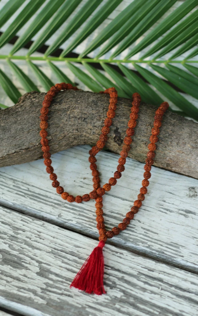The 8mm Rudraksha beads of this mala beads necklace offer protection and eternal blessings to the wearer. It is ideal for “japa meditation” & for harmonizing the energy inside and outside.