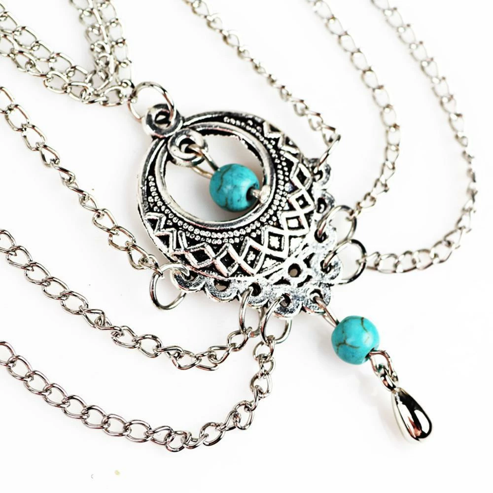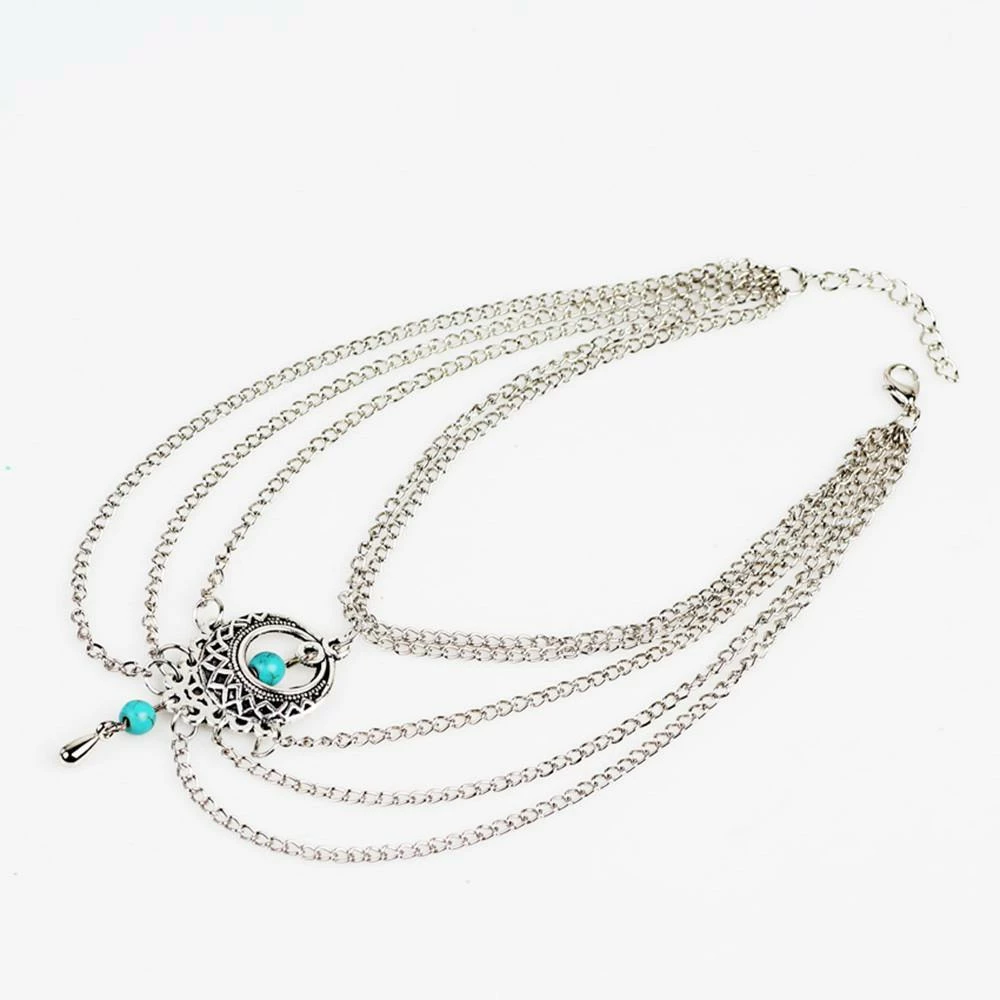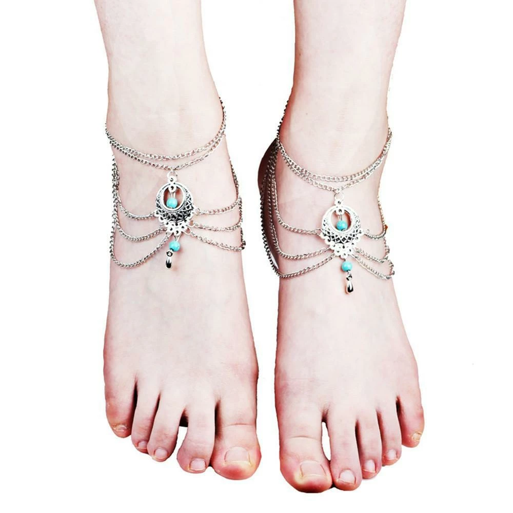 Ravish your inner gypsy with a powerfully loud bohemian statement that will set you apart in the cloud with an ethereal aura of tribal glamour. This beaded bohemian gypsy anklet is a gorgeous design that covers your entire foot with a stunning assortment of tassels, chains and turquoise beads.