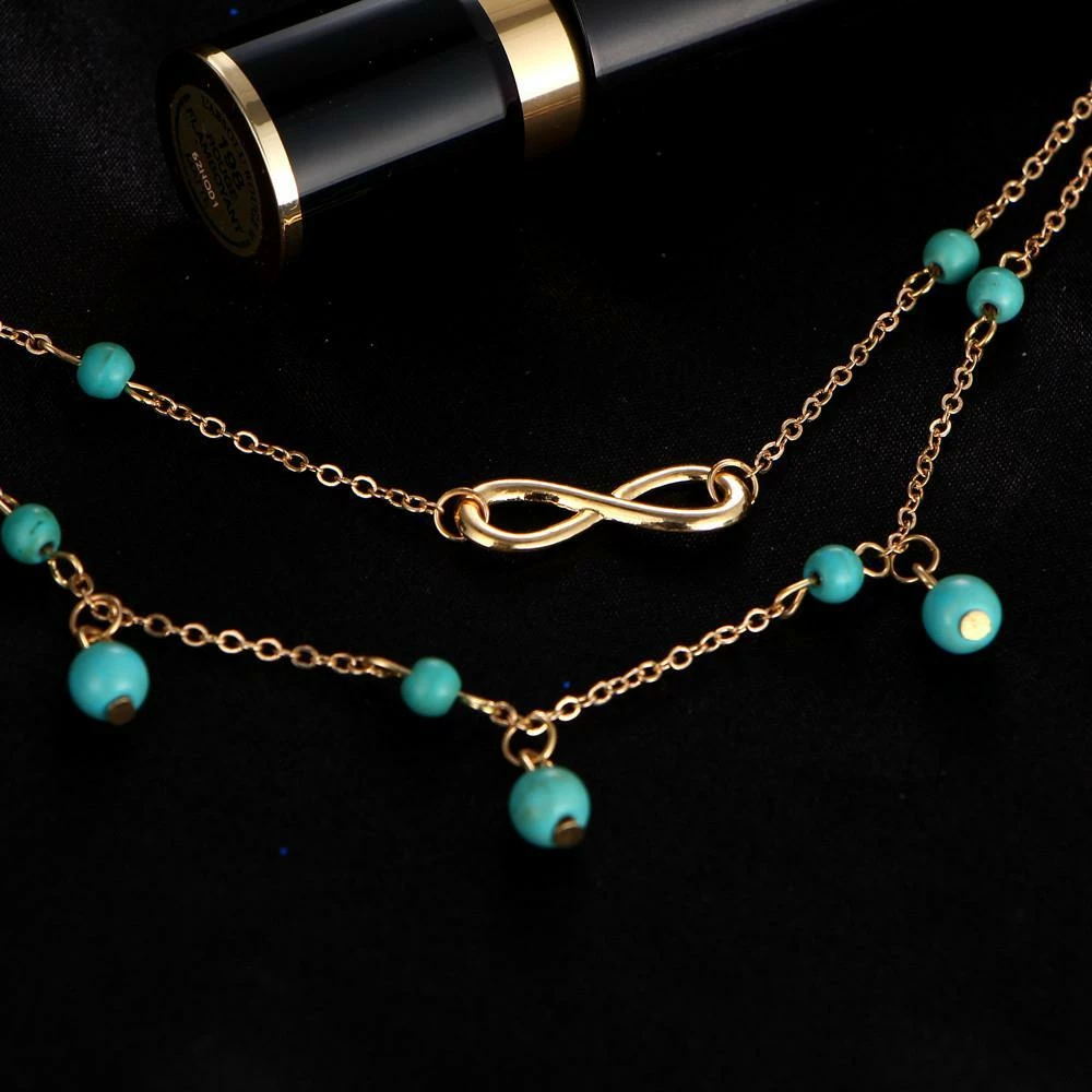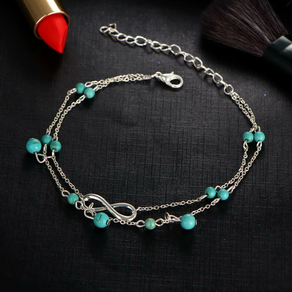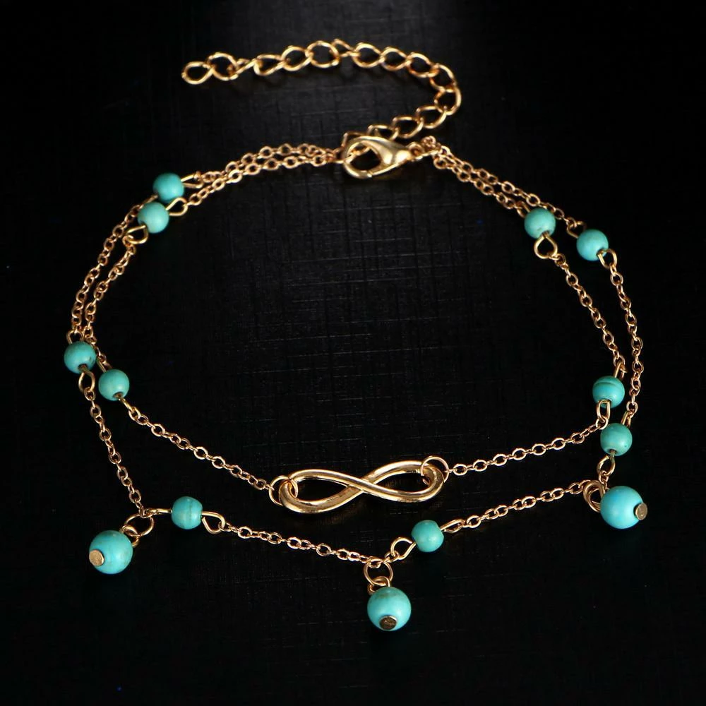 The Infinity Charm Boho anklet plays up a stunning blend of silver and gold with its minimalist and understated design. The Infinity charm gives it a bold aura of bohemian serenity, while the delightful turquoise beads work wonders to elevate its glamour and beauty.