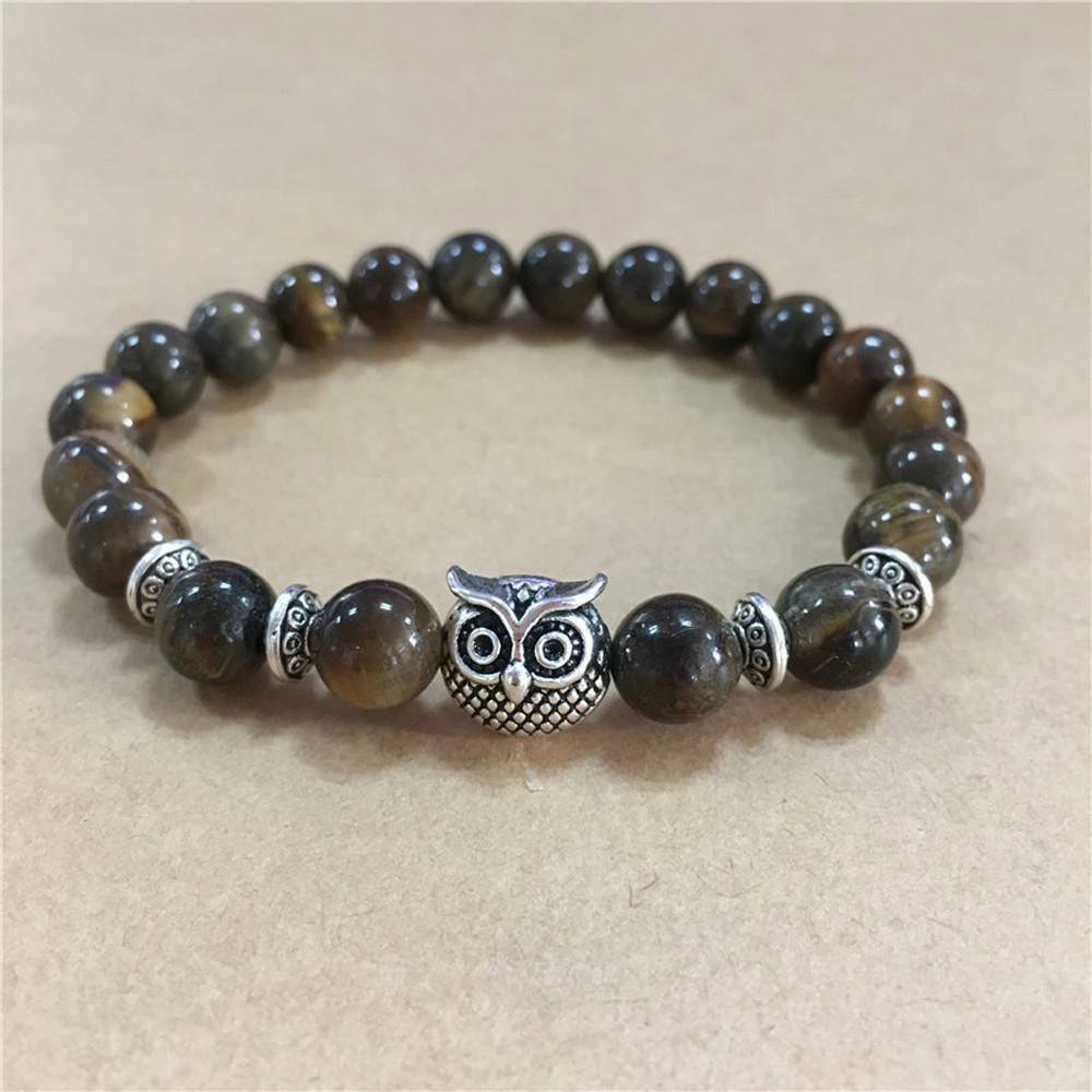 One Tribe Apparel Volcanic Bracelet Owl Bracelet Silver Bracelet Lava Stone Bead Bracelets