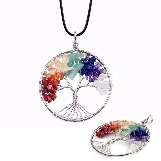 Featuring the iconic tree of life icon in the colors of the seven chakra.