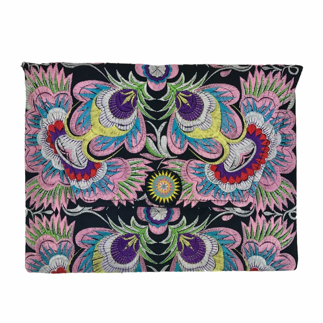 Add a bold statement to any outfit with the Embroidered Flower Clutch. Perfect for the beach, brunch, and everything in between! It is completely embroidered on the front and back by the Hmong Hill Tribes of Northern Thailand. This clutch is a fusion of traditional Thai design with a modern twist.Â