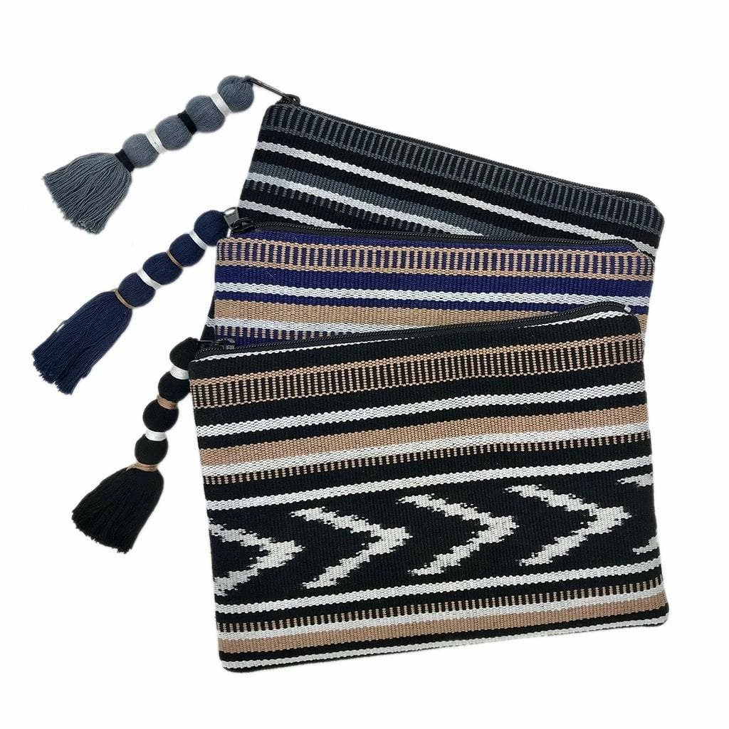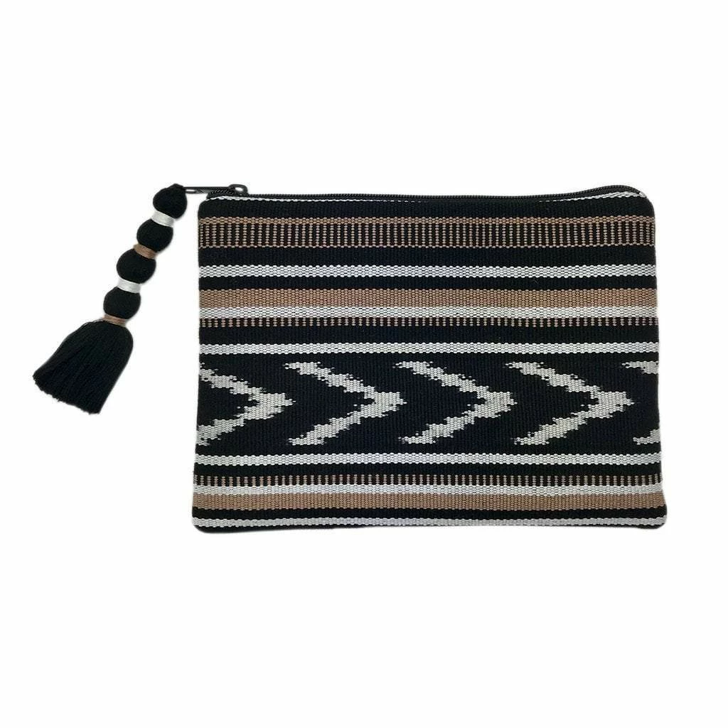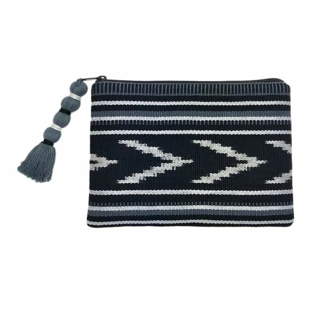 Carry a piece of history with this adorable little clutch. The tribal ikat design is handwoven on traditional backstrap looms by artisans in the highlands of . Their internationally renowned weaving skills tell a story through color and patterns of a tradition passed down through generations.Â