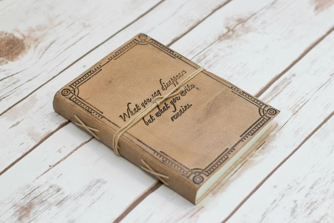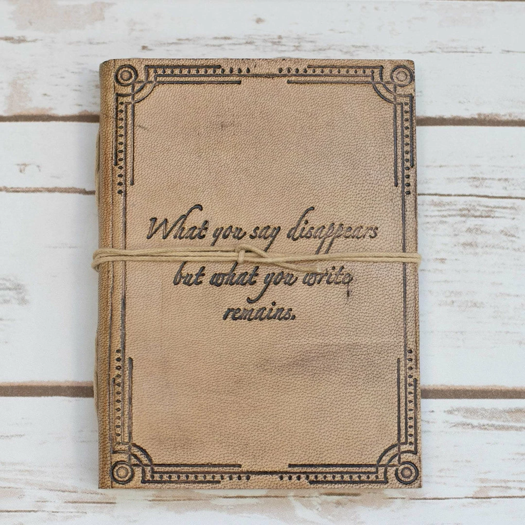 Embossed with a quote “what you say disappears but what you write remains.”