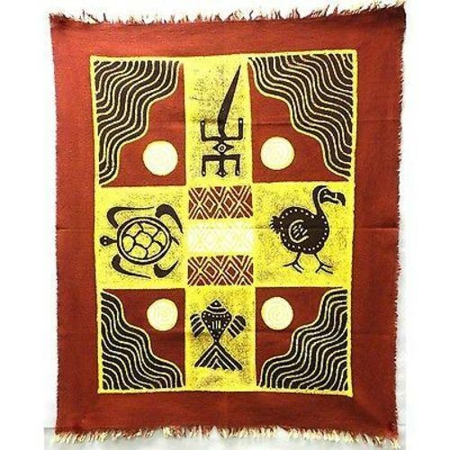 Batiked and painted by hand, this vertically-oriented barkweave cotton wall hanging has 4 creatures, including a dodo! It measures 29.5 inches by 39 inches (75cm X 1 M).