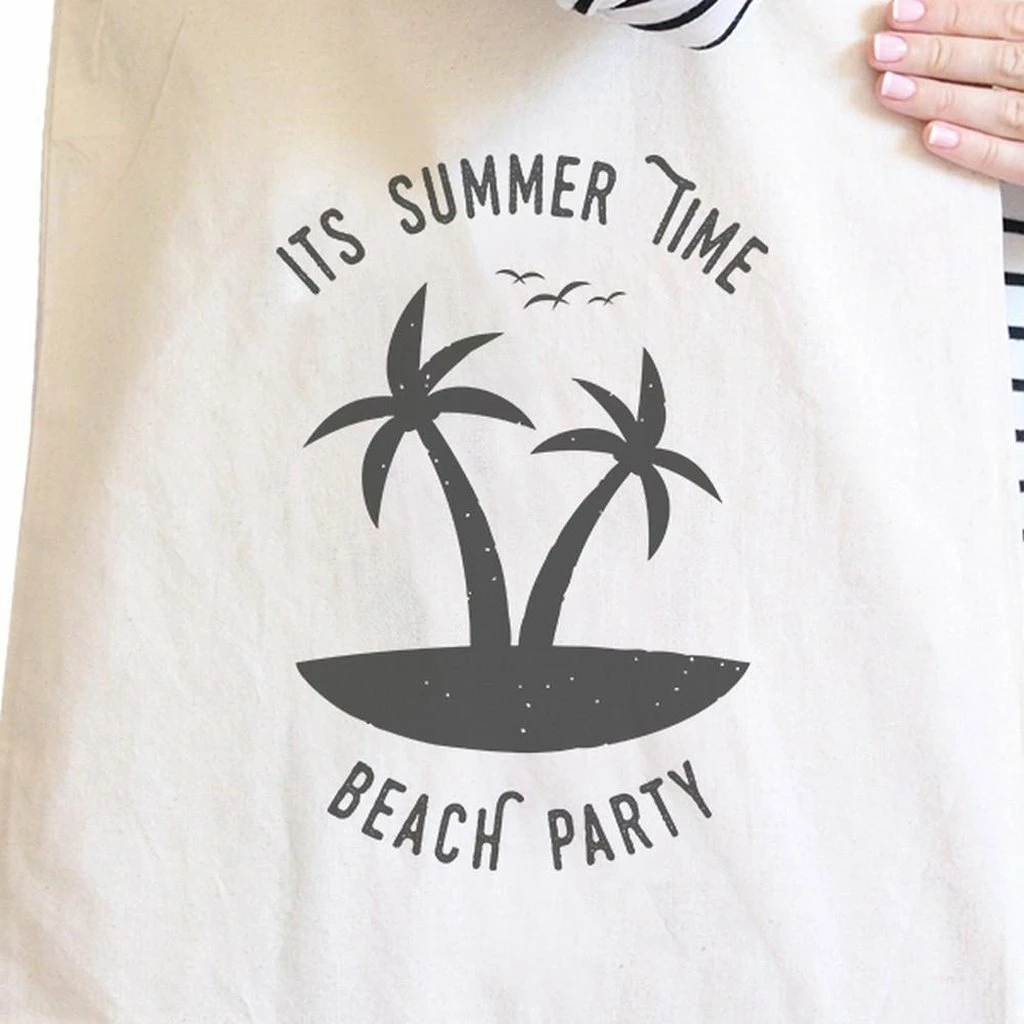 TSF Design It’s Summer Time Beach Party Natural Canvas Bags Boho Bags